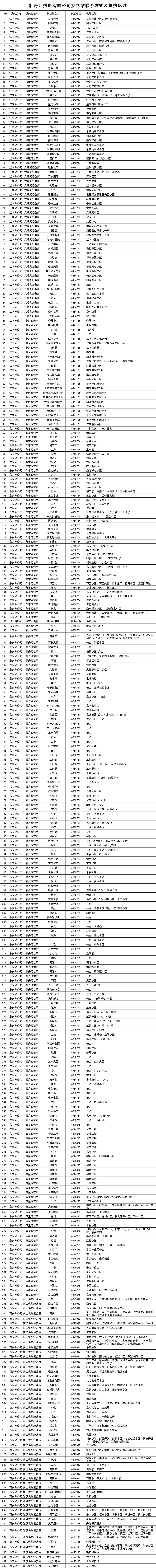 牡丹江熱電有限公司換熱站統(tǒng)計(jì)公示